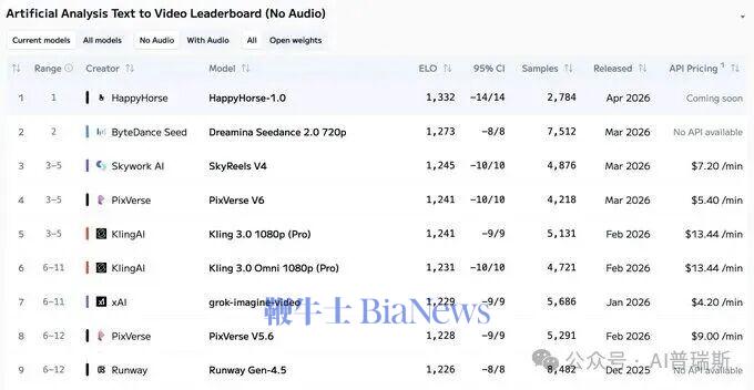 近日,AI视频生成领域迎来一位重磅选手——全新的匿名视频模型“HappyHorse-1.0”横空出世,在权威第三方评测网站Artificial Analysis的榜单上表现抢眼,被认为来自阿里巴巴淘天集团,并迅速在资本市场引发震动,午后阿里巴巴港股大涨超过7%。